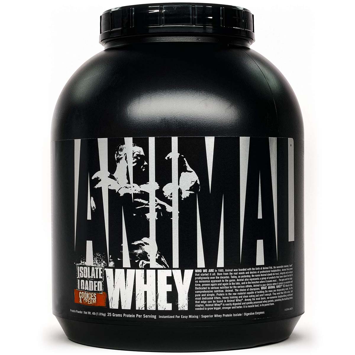 Universal Nutrition Animal Whey Isolate Loaded, Cookies and Cream، 4 LB، هو مكمل بروتين عالي الجودة مصمم للرافعين الجادين. يوفر هذا المنتج 25 جرامًا من البروتين لكل وجبة، ويجمع بين 50% من بروتين مصل اللبن المعزول و50% من بروتين مصل اللبن المركز. يضمن هذا المزيج تناولًا متوازنًا من البروتينات سريعة الهضم، الضرورية لنمو العضلات وتعافيها.