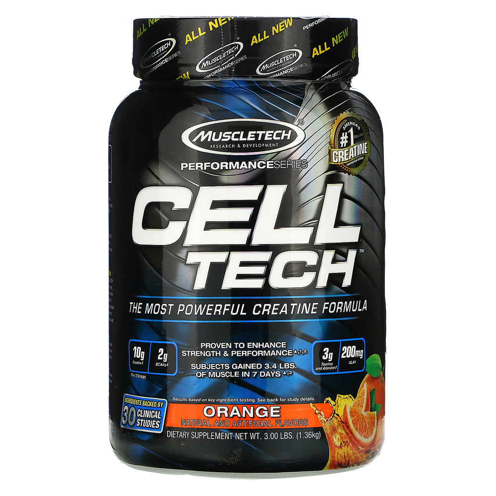 تركيبة Muscletech Cell Tech Creatine Formula، برتقالية، 3 رطل، هي مكمل غذائي مصمم للرياضيين ولاعبي كمال الأجسام الذين يهدفون إلى بناء قوة العضلات. تعتمد هذه الصيغة المتقدمة على أبحاث مكثفة وقد أظهرت نتائج مهمة، حيث اكتسب المستخدمون متوسط 3.4 رطل في 7 أيام فقط.