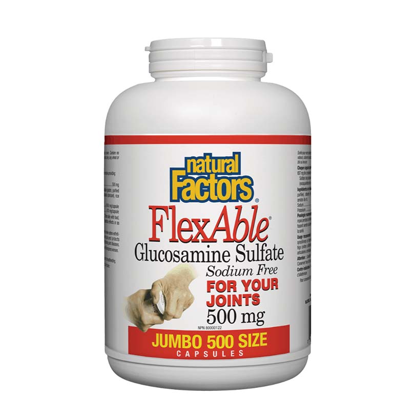 Natural Factors Glucosamine Sulfate, 500 mg, 500 Capsules (Flexable) - Natural Factors