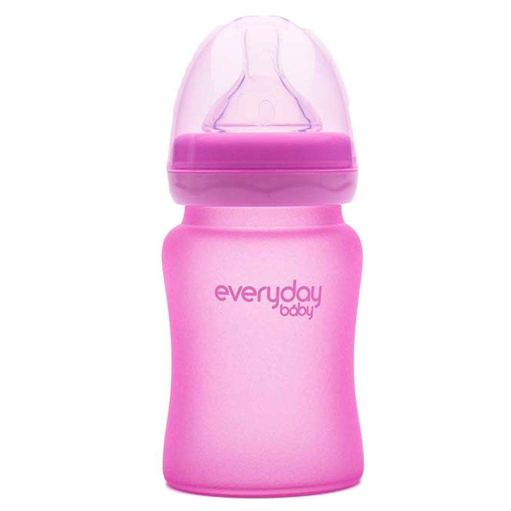 زجاجة رضاعة زجاجية للأطفال من إيفري داي بيبي، حساس للحرارة، وردي، 150 مل