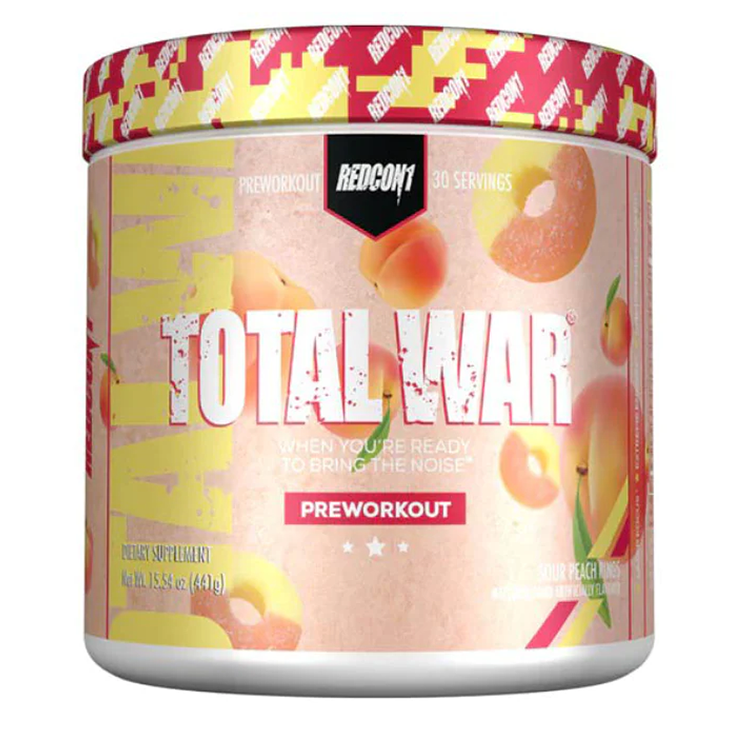 ريدكون1 توتال وور طعم الخوخ الحامض يأتي في عبوة تحتوي على 30 حصة، مما يوفر إمدادًا لشهر للاستخدام اليومي. تم تصميم التركيبة لمساعدة المستخدمين على السيطرة على أكثر تمارينهم تحديًا من خلال تحسين التركيز والطاقة والقدرة على التحمل.