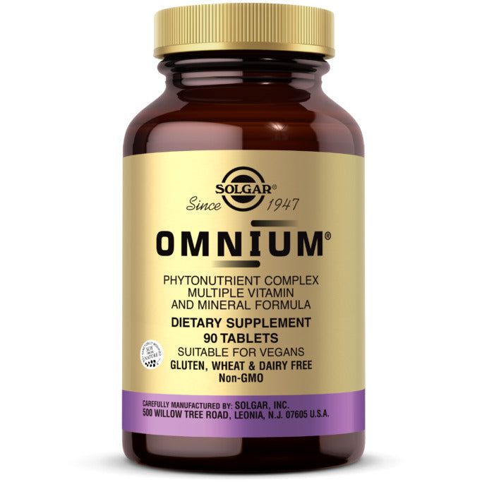 Solgar Omnium، 90 قرصًا، عبارة عن تركيبة شاملة متعددة العناصر الغذائية تحتوي على أكثر من 47 مكونًا. يقدم هذا المنتج مزيجًا تآزريًا من المركبات النباتية ومضادات الأكسدة والمواد المغذية المتخصصة إلى جانب الفيتامينات والمعادن الأساسية. يحتوي على مزيج كبير من المغذيات النباتية ومضادات الأكسدة المتقدمة، مثل مستخلص الكركم القياسي ومستخلص البروكلي الصليبي.