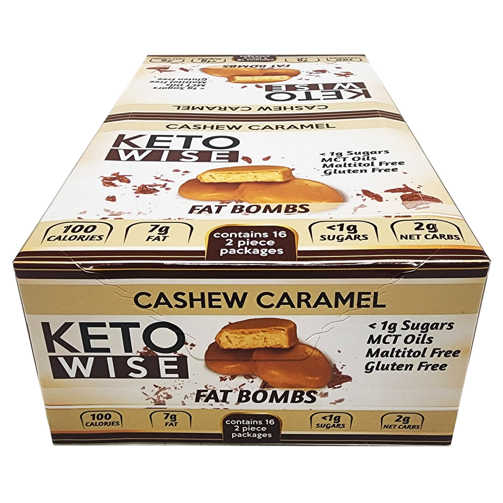 علبة من 16 قطعة، قنابل الدهون كيتو وايز، كاجو كراميل