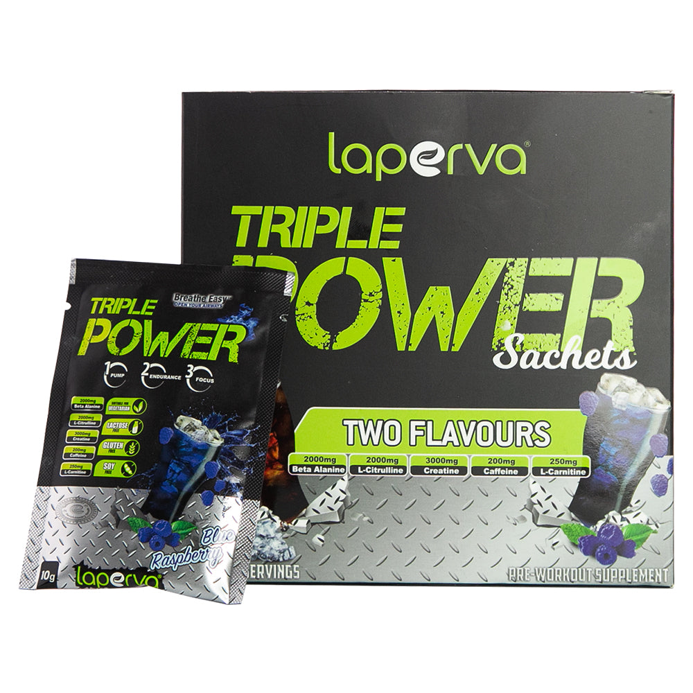 Triple Power Pre-Workout Sachets, Cola & Blue Raspberry, Laperva, 30 Sachets - Laperva