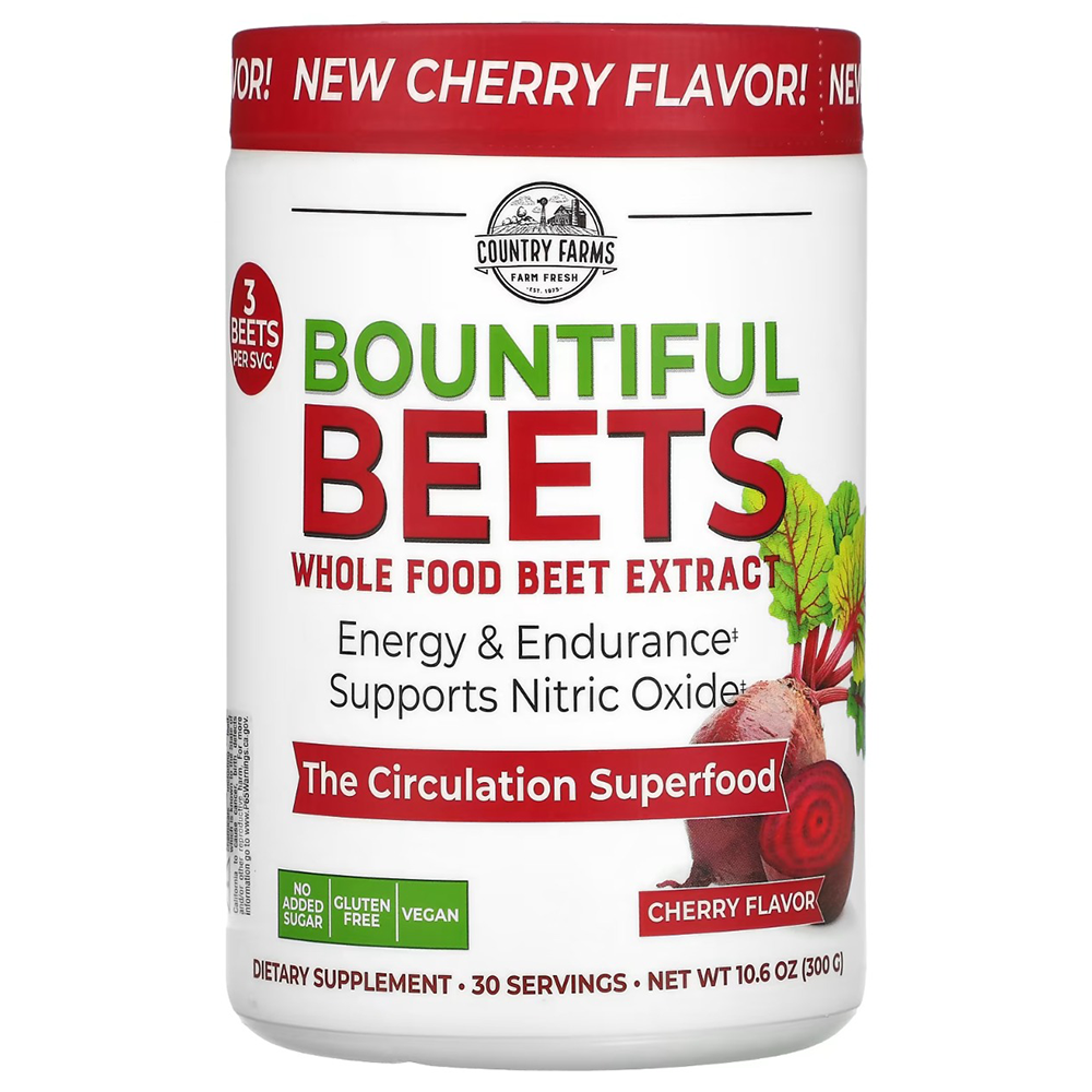 Country Farms Bountiful Beets, Grape, 300 Gm is a convenient drink mix designed to harness the benefits of pure beets. This product is formulated to support cardiovascular health, promote natural energy, and enhance endurance. Each serving is equivalent to consuming three beets, making it an efficient way to increase your daily beet intake.