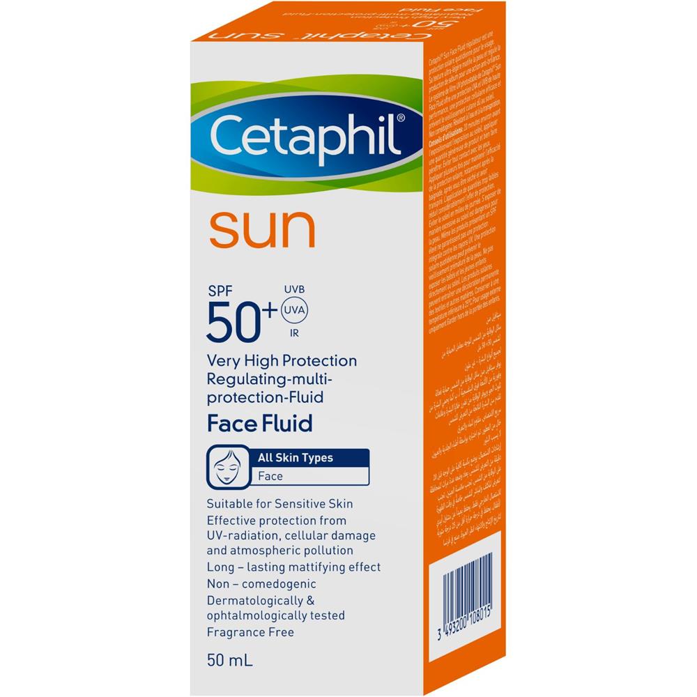 The fluid is sweatresistant, making it suitable for active lifestyles. It also provides a longlasting mattifying effect, reducing excess sebum and shine. Additionally, Cetaphil Sun Face Fluid helps to protect the skin against atmospheric particle pollution, contributing to overall skin health. This product is ideal for daily use, offering comprehensive protection and hydration in a single application.