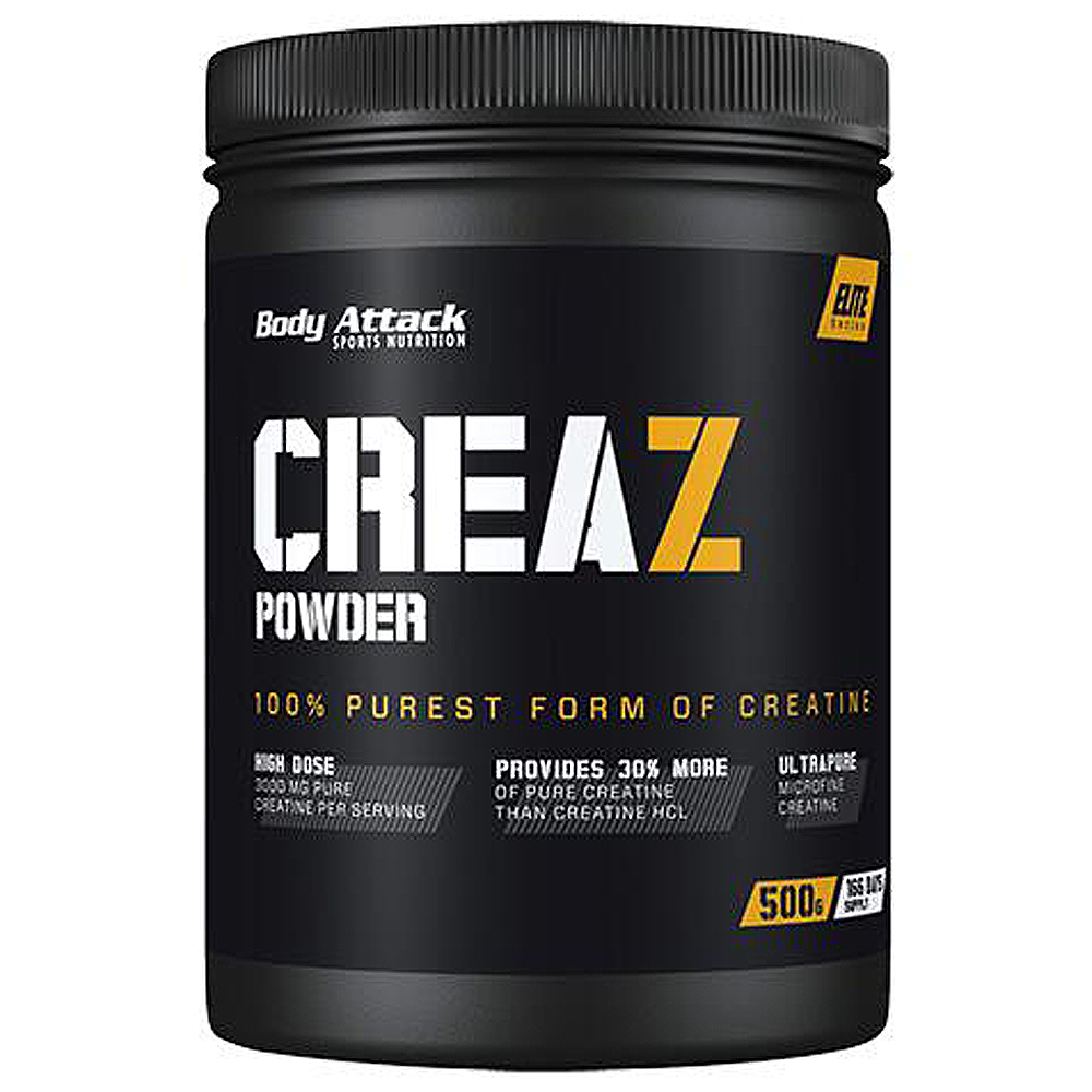 Body Attack Creaz Powder, Unflavored, 500 Gm, features anhydrous creatine, a new and potent form of creatine. This advanced creatine is produced by removing the water molecule from creatine monohydrate, resulting in a highly concentrated and free form of creatine. This process enhances its bioavailability by up to 30% compared to creatine HCL.