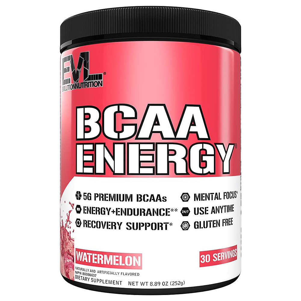 Evlution Nutrition BCAA Energy in Watermelon flavor is a comprehensive supplement designed to enhance energy, focus, muscle building, and recovery. Each serving provides 5 grams of pure Branched Chain Amino Acids (BCAAs) in a 2:1:1 ratio of Leucine, Isoleucine, and Valine, which is the most researched ratio for supporting muscle building and recovery.