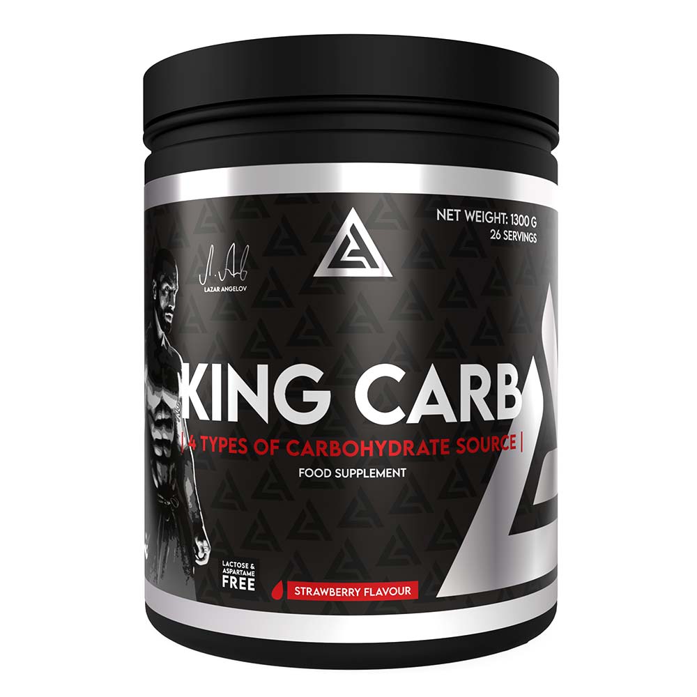 Lazar Nutrition King Carb, Strawberry, 26, is a comprehensive carbohydrate supplement designed to support bodybuilding goals. This product features a blend of four types of carbohydrates, ensuring both fast and slow digestion rates. Fastdigesting carbohydrates aid in muscle recovery by quickly resynthesizing glycogen and increasing insulin concentration. Slowdigesting carbohydrates provide a sustained energy source, maintaining even blood sugar levels and offering higher fiber and protein content.