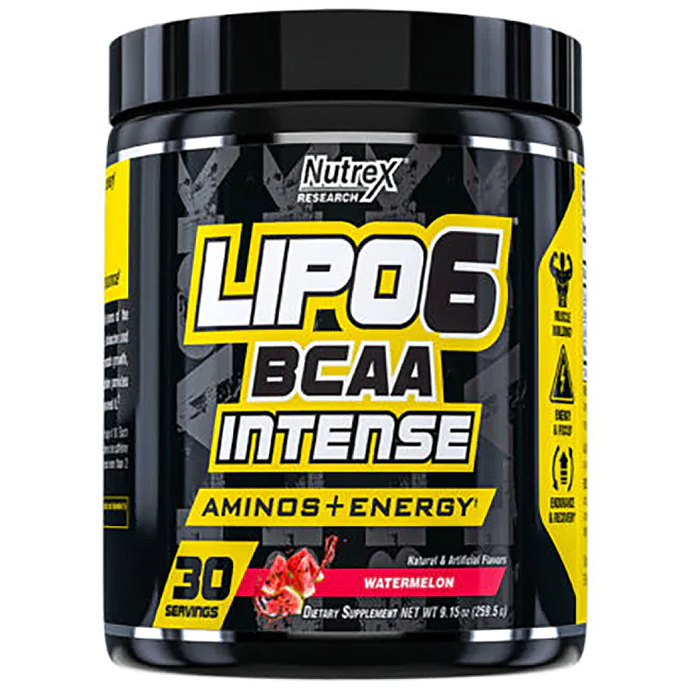 Nutrex Research Lipo 6 BCAA Intense in Watermelon flavor is a dietary supplement designed to support muscle growth, strength, and recovery. Each serving delivers 6 grams of essential branchedchain amino acids (BCAAs), including LLeucine, LIsoleucine, and LValine. These BCAAs are provided in a researchproven 2:1:1 ratio, which is crucial for optimal muscle development and performance.