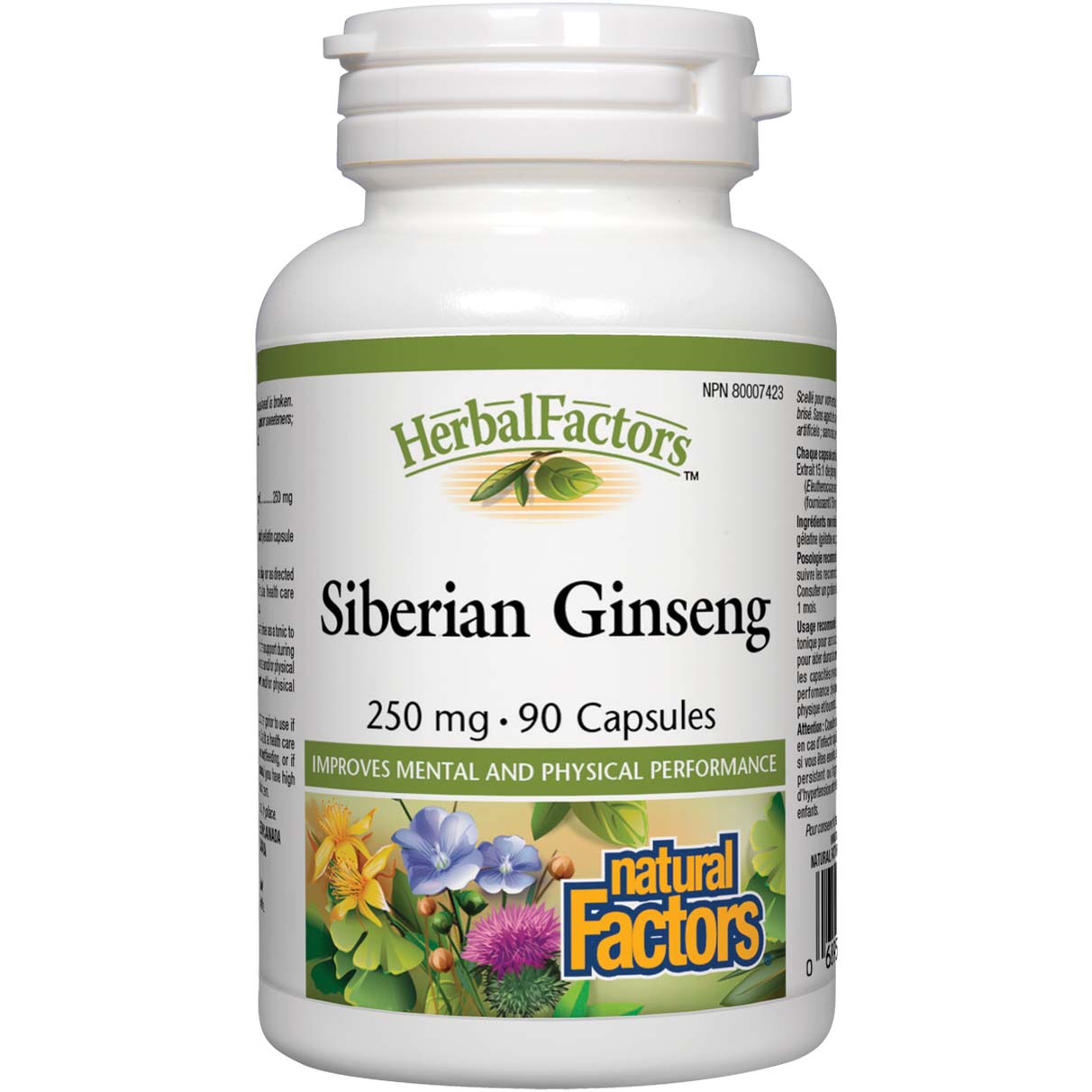 Natural Factors Siberian Ginseng, 250 mg, 90 Capsules, is a dietary supplement designed to support mental and physical performance. Each capsule contains 250 mg of Siberian ginseng, a herb known for its active compounds called eleutherosides. These compounds provide antistress and antiinflammatory properties.