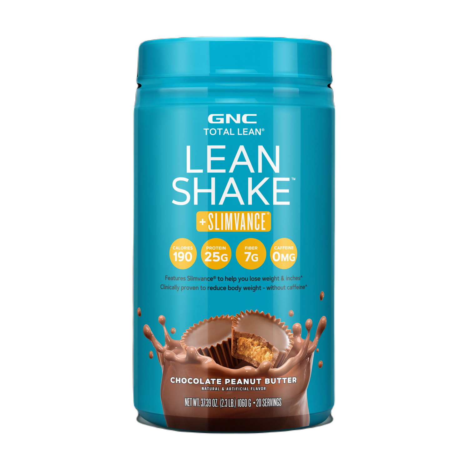 Introducing GNC Total Lean Lean Shake + Slimvance Caffeine Free in the irresistible Chocolate Peanut Butter flavor a revolutionary meal replacement shake designed for those committed to their weight loss journey. This specially formulated, delicious shake is packed with the essential nutrients your body needs to support your health and wellness goals, all without the buzz of caffeine.