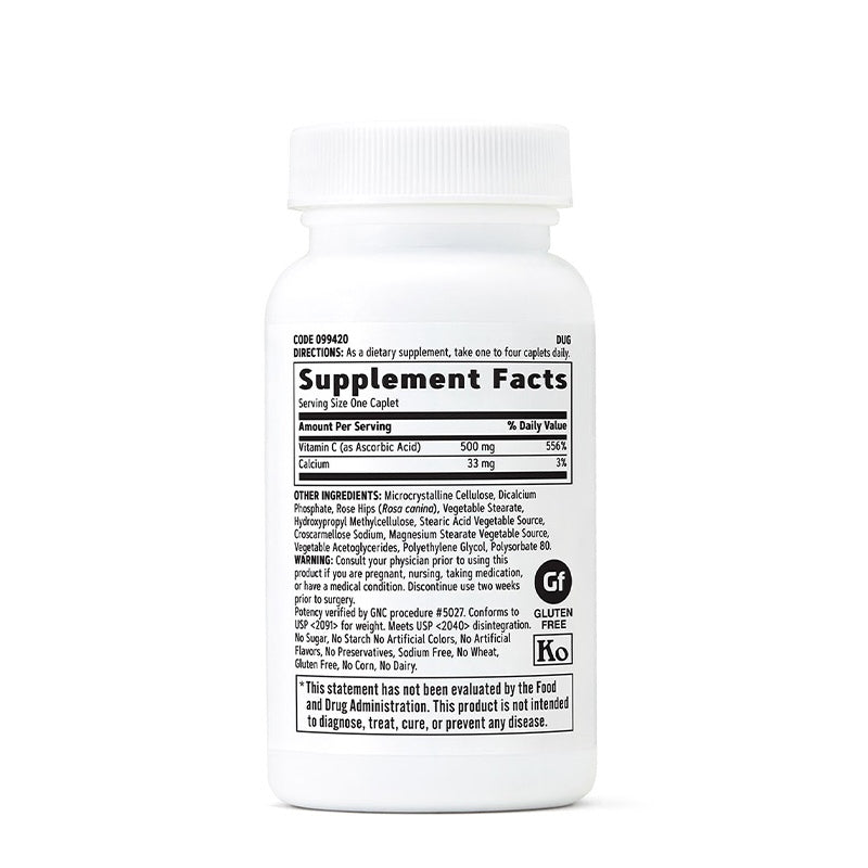 Conveniently packaged in easy-to-swallow tablets, this supplement integrates seamlessly into your daily regimen. Whether you're looking to fortify your immune defenses during flu season or enhance your skin's natural radiance, GNC Vitamin C 500 mg with Rose Hips offers a reliable solution backed by scientific research.