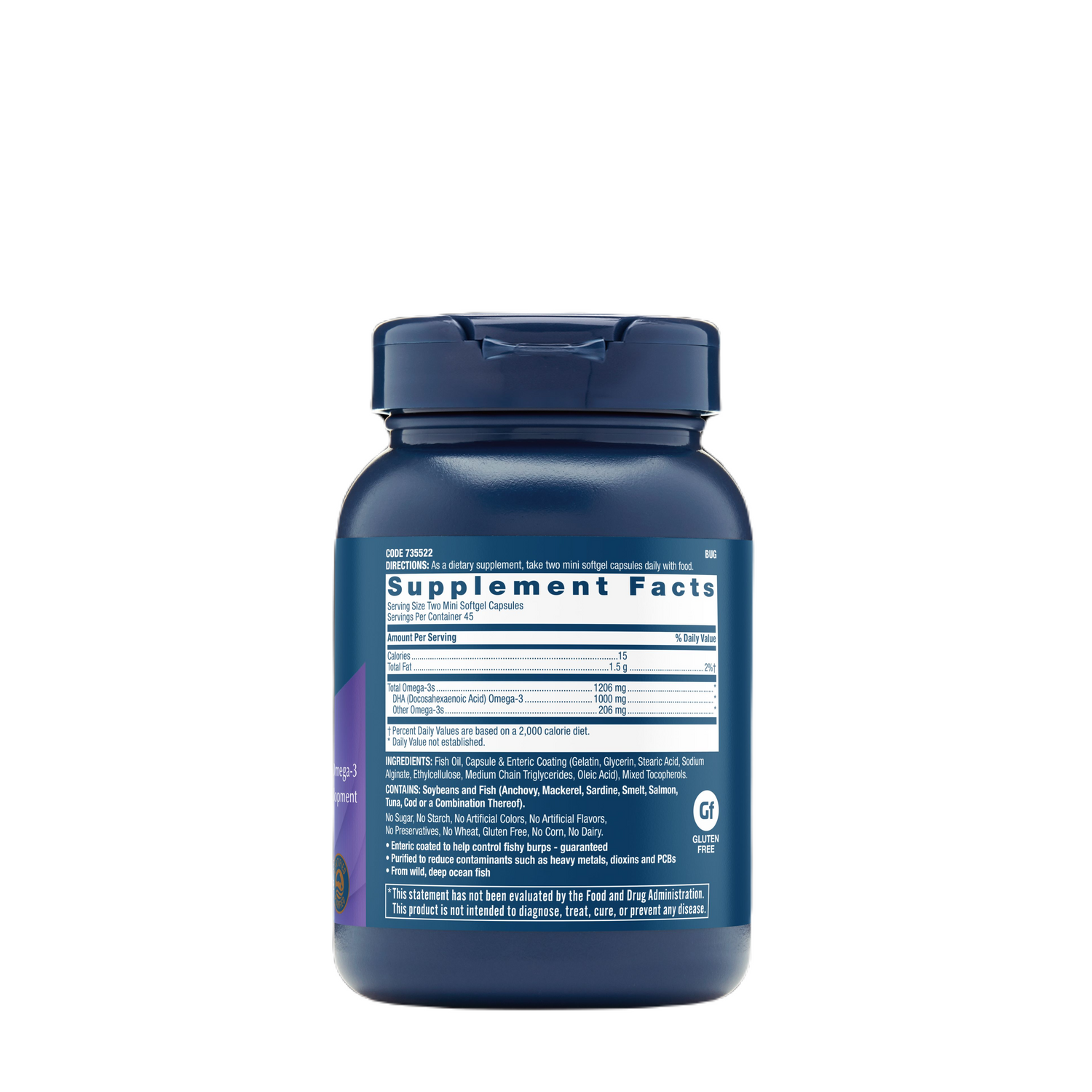 Experience the benefits of concentrated DHA without the unwanted fishy burps our enteric coating technology takes care of that. Trust GNC Triple Strength DHA 1000 Mini for a pure, potent, and pleasant Omega-3 supplement that supports your brain and vision health effectively.