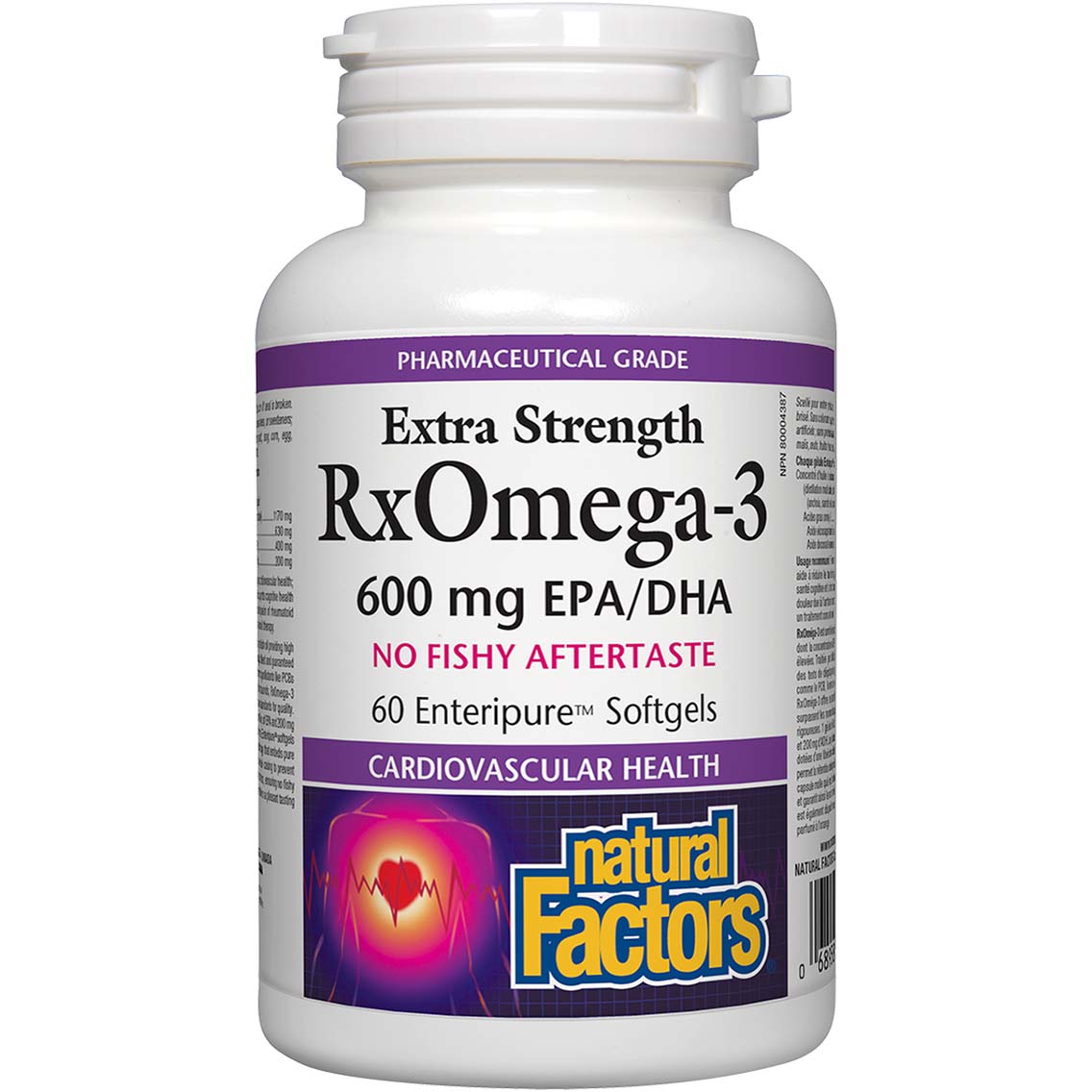 Natural Factors Extra Strength RxOmega3, 600 mg, 60 Softgels, is a highpotency omega3 supplement designed to support overall health. Each softgel contains a concentrated dose of omega3 fatty acids, derived from pure fish oil that is free from impurities and heavy metals. This supplement is formulated to help maintain heart health, support healthy cholesterol levels, and stabilize triglyceride levels.