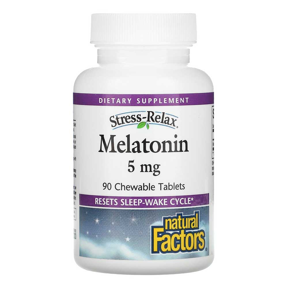 Natural Factors Melatonin is beneficial for those experiencing insomnia, especially in the elderly, where agerelated declines in melatonin production are common. Each bottle contains 90 chewable tablets, providing a convenient and effective solution for improving sleep quality and duration.