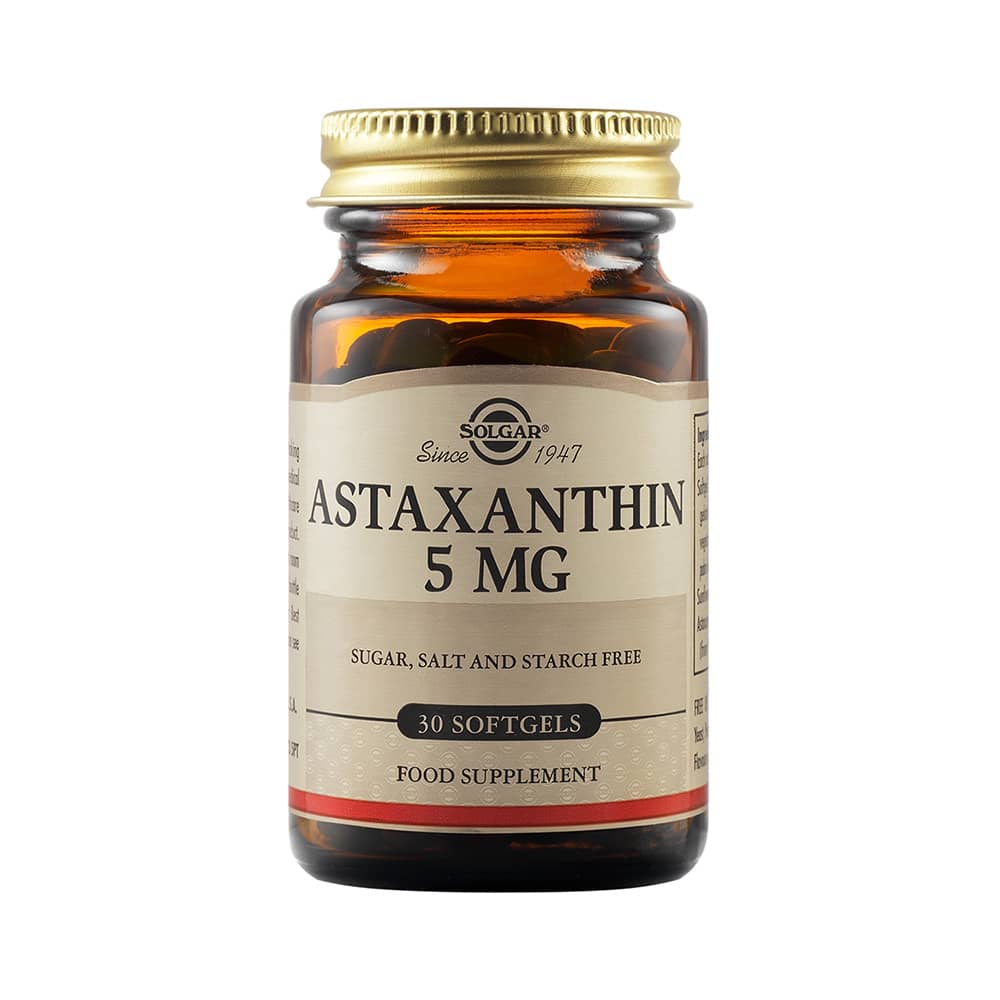 Each softgel contains 5 mg of natural astaxanthin, along with sunflower seed oil, gelatin, and vegetable glycerin. The product also includes naturallyoccurring carotenoids such as lutein, canthaxanthin, and beta carotene. Solgar Astaxanthin is free from gluten, wheat, yeast, sugar, salt, artificial flavors, sweeteners, preservatives, and colors.