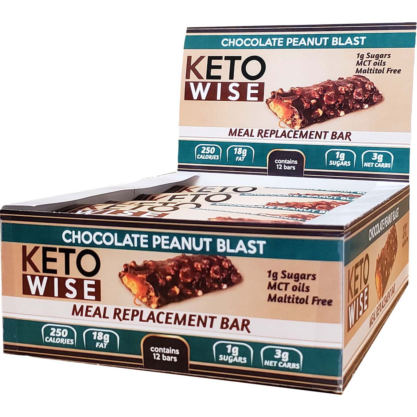 Box of 12 Keto Wise Meal Replacement Bars, Chocolate Peanut Blast