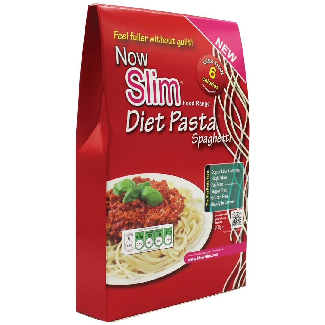 Now Slim Diet Pasta, Spaghetti, 200g, is a lowcalorie alternative to traditional pasta, containing less than 6 calories per 100g serving. This product is designed for those looking to reduce their caloric intake without sacrificing the enjoyment of pasta dishes. By substituting regular pasta with Now Slim Diet Pasta, you can save up to 350 calories per meal.